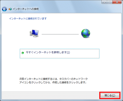 - 正常にインターネットに接続されると、「インターネットに接続されています」と表示されます。