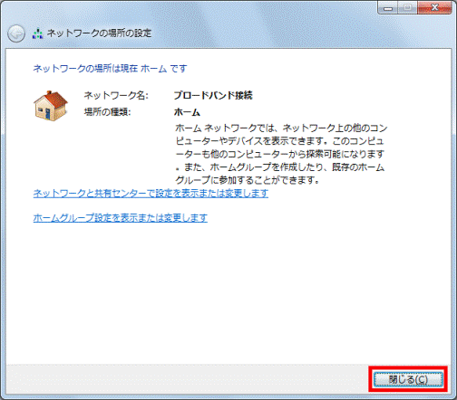 - 「ネットワークの場所は現在(選択した場所)です」と表示されます。