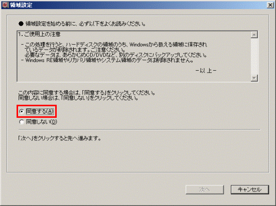 - 「領域設定を始める前に、必ず以下をよくお読みください。」と表示されます。