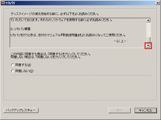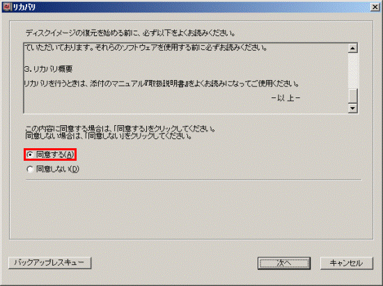 - 「ディスクイメージの復元を始める前に、必ず以下をよくお読みください。」と表示されます。