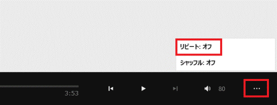 右下に表示されている「・・・」をクリックし、表示されるメニューから「リピート」や「シャッフル」をクリックします。