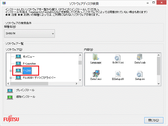 (「リカバリ領域に保存されているソフトウェア一覧を表示します。」と表示された場合) - ソフトウェアディスク検索が起動します。