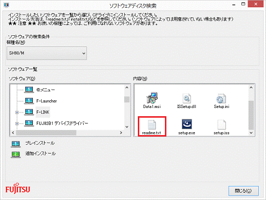 (「readme.txt」が表示されている場合)アドバイス「install.txt」や「readme.txt」などが表示されていない場合は、「setup.exe」などのファイルをダブルクリックして、画面の指示に従ってインストールを行います。