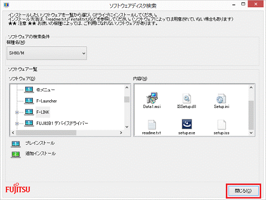 - インストールが完了したら、「閉じる」ボタンをクリックし、ソフトウェアディスク検索を終了します。