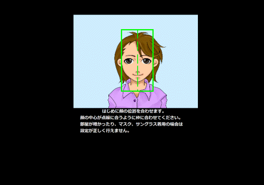 - 黒い画面に「はじめに顔の位置を合わせます。」と表示されます。