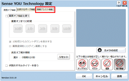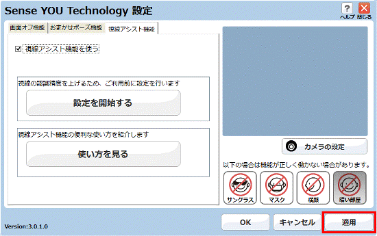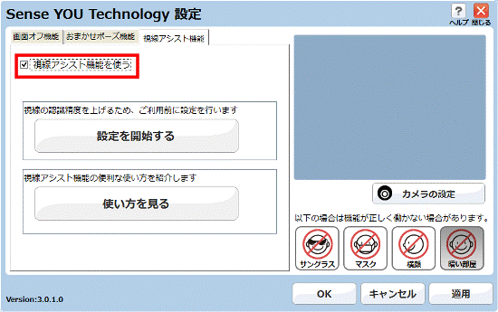 - 「視線アシスト機能を使う」をクリックし、チェックを付けます。