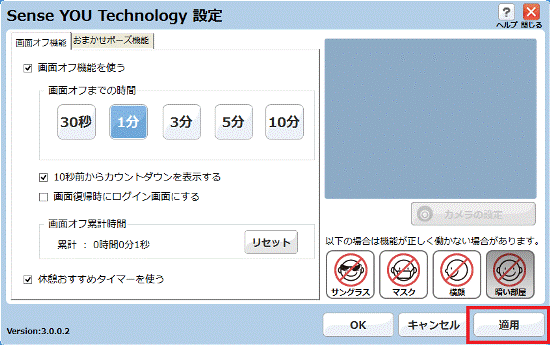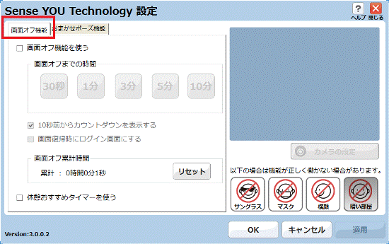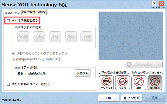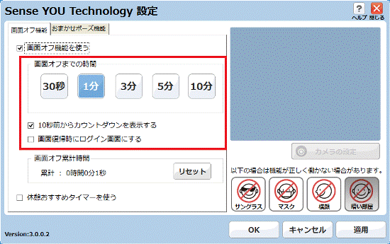 - 画面オフ機能や休憩おすすめタイマーも使用する場合は、「画面オフ機能 / 休憩おすすめタイマー」をご覧ください。