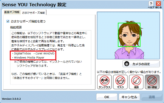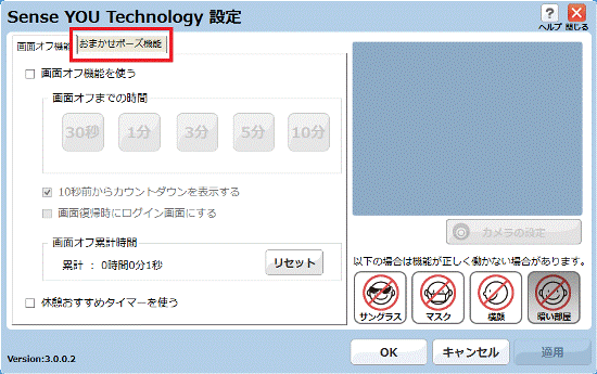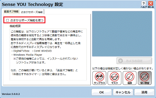 「Sense YOU Technology」の「Sense YOU Technology 設定」をクリックします。