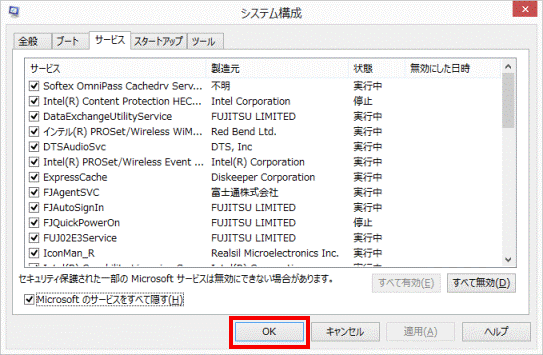 - 「OK」ボタンをクリックし、「システム構成」を閉じます。