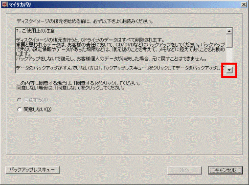 - 「ディスクイメージの復元を始める前に、必ず以下をよくお読みください。」と表示されます。