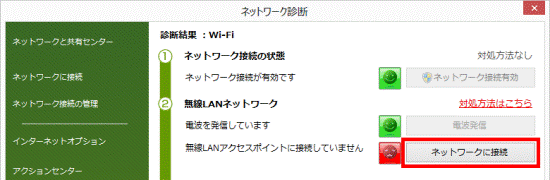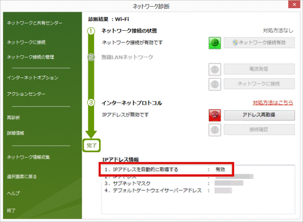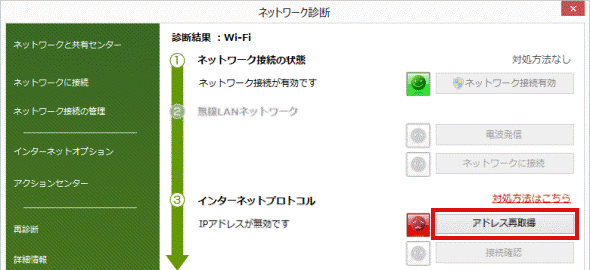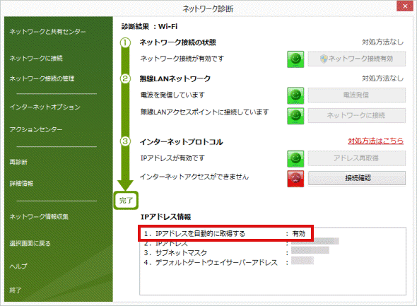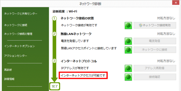 対処後に、「ネットワーク診断」をもう一度実行して、診断結果を確認します。