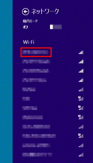 - 一覧から、接続するネットワーク名(SSID)をクリックします。