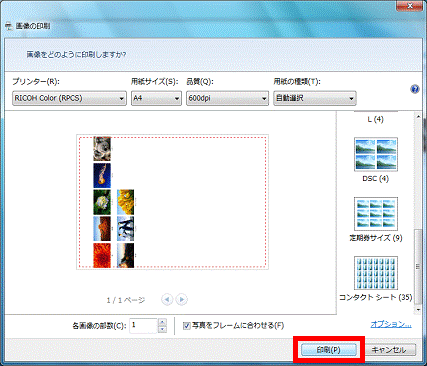 [Windows 7] A4の用紙に写真をたくさん並べて印刷する方法を教えてください。