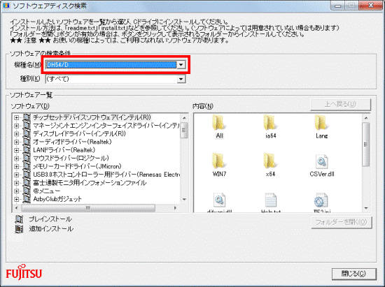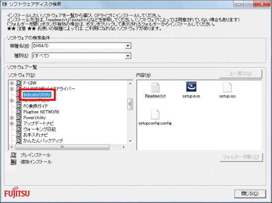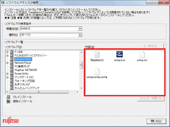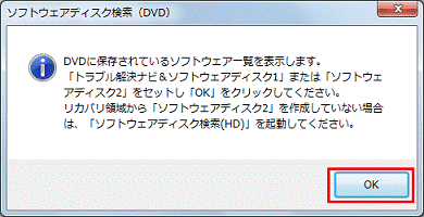 4. 「DVDに保存されているソフトウェア一覧を表示します。」と表示されます。