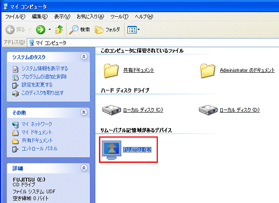 「FUJITSU (E:)」(または、「DVD-RAMドライブ」)