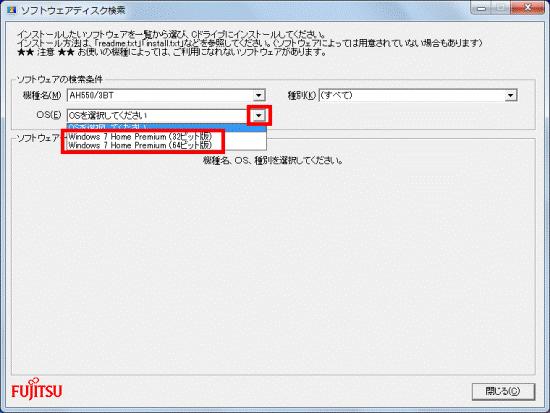 「OS」欄にある「▼」ボタンをクリックし、表示される一覧からお使いのOSをクリックします。