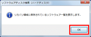 3. 「リカバリ領域に保存されているソフトウェア一覧を表示します。」と表示されます。