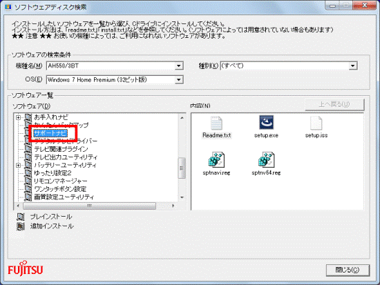 ここでは、例として「FMVサポートナビ」をクリックします。