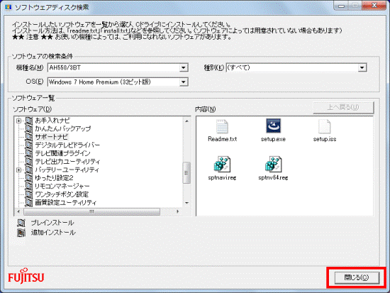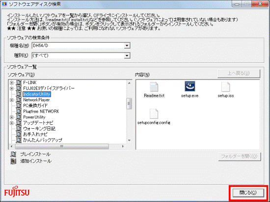 8. インストールが完了したら、「閉じる」ボタンをクリックし、ソフトウェアディスク検索を終了します。