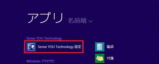 - 「スタート」ボタン→「すべてのアプリ」→「Sense YOU Technology」→「Sense YOU Technology 設定」をクリックします。