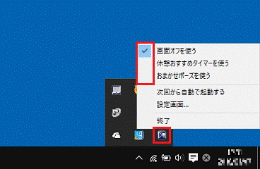 - 「Sense YOU Technology 設定」アイコンを右クリックし、メニューがー表示されたら、手順3.でクリックした項目にチェックが付いているか、または外れているかどうかを確認します。