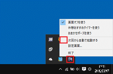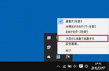 メニューに、「次回から自動で起動する」が表示されない場合は、自動起動はできません。 - チェックが付いている場合