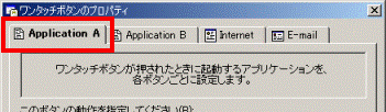 「Application A」など、表示されているタブをクリックします。アドバイス表示されるタブの名称は、お使いの機種によって異なります。
