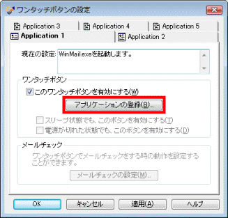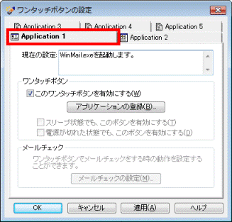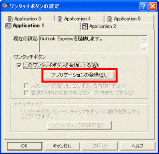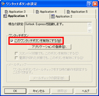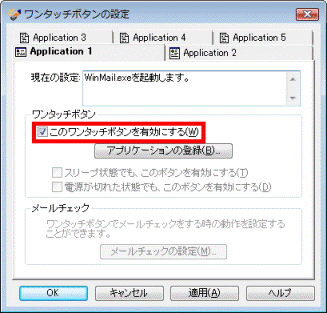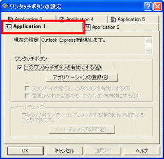 (「Application 1」タブをクリックした例) - 「このワンタッチボタンを有効にする」にチェックがあることを確認します。