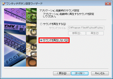 [ワンタッチボタン設定] アプリケーションを起動したときに、サウンドを再生しない方法を教えてください。