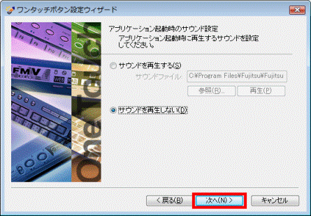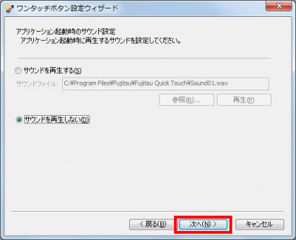 - 「アプリケーション起動時のサウンド設定」と表示されます。