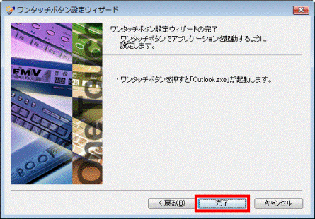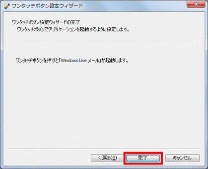 - 「ワンタッチボタン設定ウィザードの完了」と表示されます。