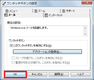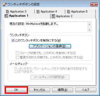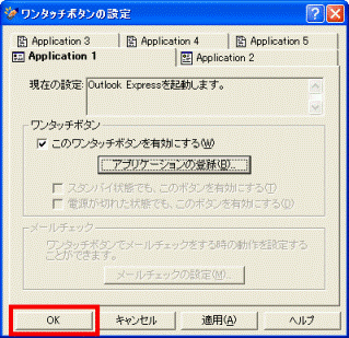 設定を変更したいアプリケーションがない場合は「OK」ボタンをクリックし、「ワンタッチボタンの設定」を閉じます。