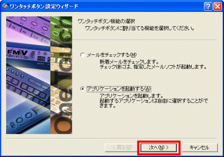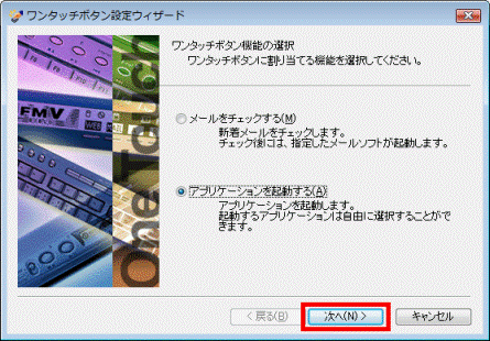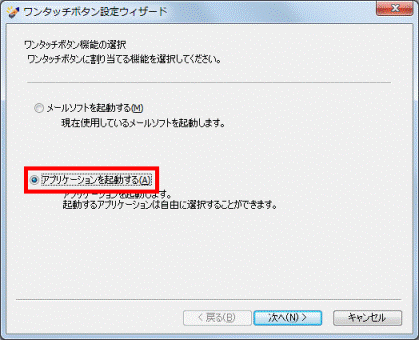 「アプリケーションを起動する」が選択されていることを確認し、「次へ」ボタンをクリックします。