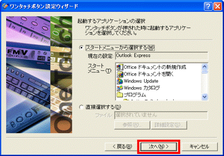 「ワンタッチボタン設定」を起動する手順は、次のとおりです。