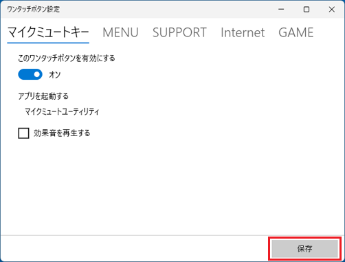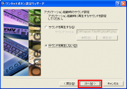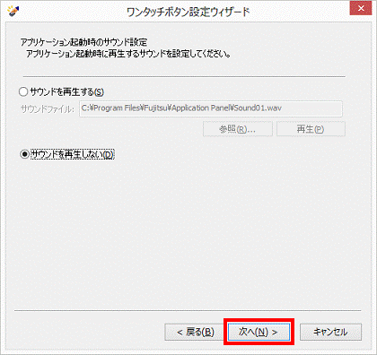 「ワンタッチボタンの設定」に戻ります。 - その他にもサウンドの設定を変更したいアプリケーションがある場合は、設定の変更が完了するまで、手順2. 〜手順9. を繰り返します。