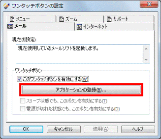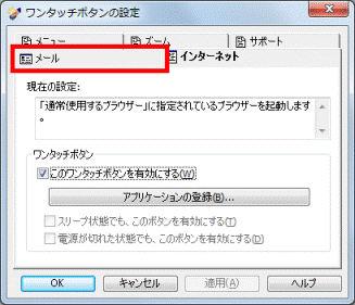 (「メール」タブをクリックした例) - 「このワンタッチボタンを有効にする」にチェックがあることを確認します。