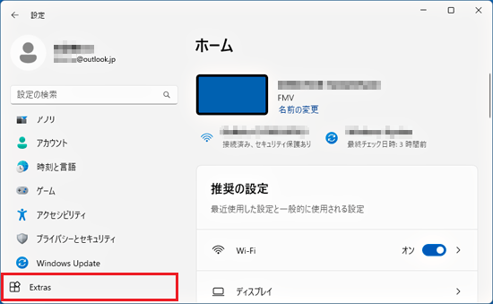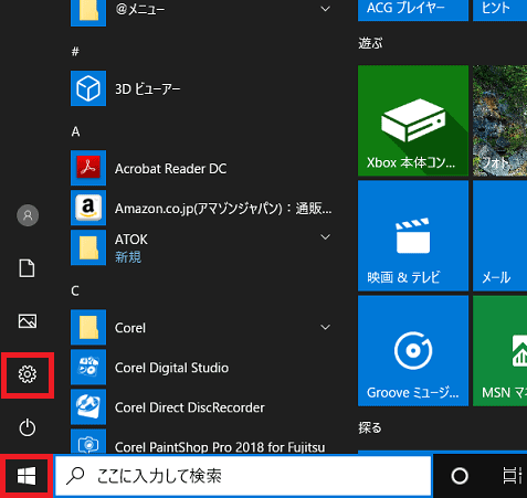 - 「スタート」ボタン→「設定」の順にクリックします。
