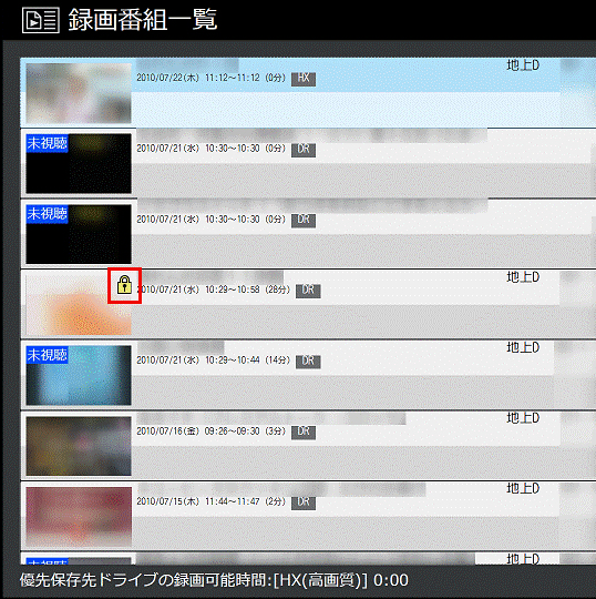 - 保護した番組に、錠前のマークが付いたことを確認します。
