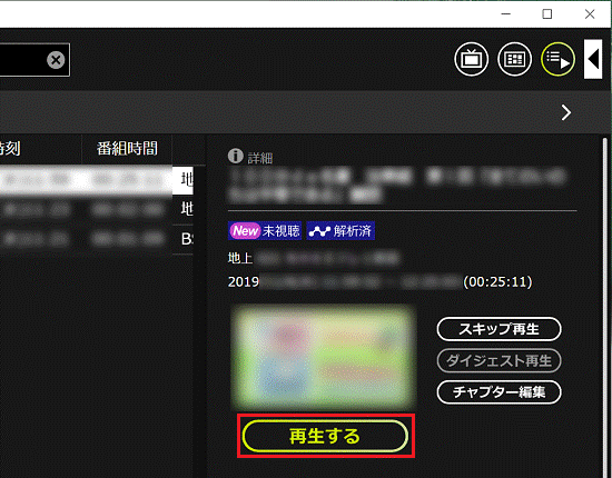 また、スポーツ番組で「ダイジェスト再生」ボタンが有効な場合、マウスでクリックすると、ダイジェスト再生ができます。