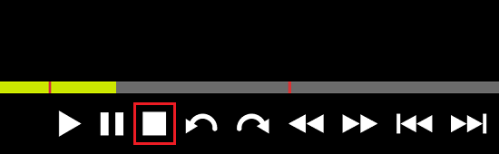 マウス操作の場合は、再生画面をクリックし、画面左下に表示される「停止」ボタンをクリックします。