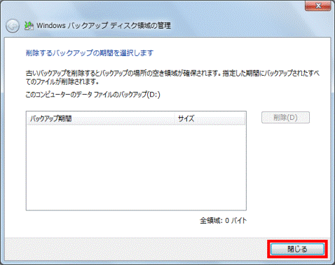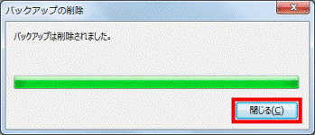 11. バックアップファイルの削除が完了したら、「閉じる」ボタンをクリックします。
