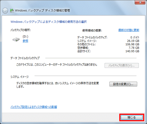 システムイメージを定期的にバックアップする設定を行っていない場合、システムイメージをすべて削除できます。
