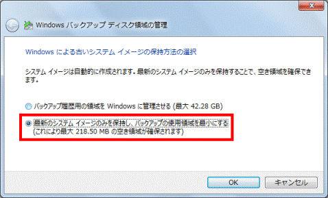 「最新のシステム イメージのみを保持し、バックアップの使用領域を最小にする」をクリックします。