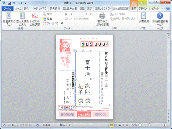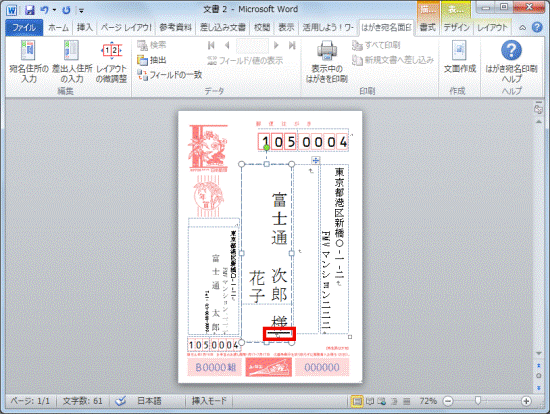 [Word 2010] 「はがき宛名面印刷ウィザード」で作成した宛名面の内容を修正する方法を教えてください。