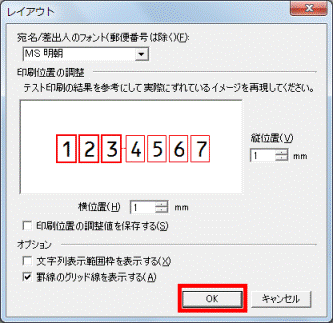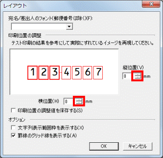 - 「縦位置」欄の「▲」/「▼」ボタンをクリックし、位置を調整します。
