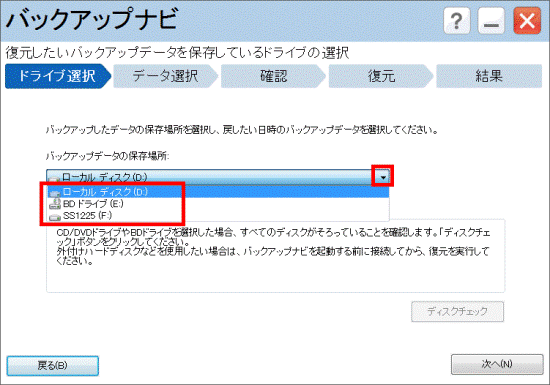 - 「ドライブ選択」が表示されます。