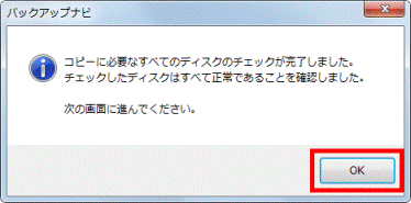 ディスクが複数ある場合は、手順9.を繰り返して、すべてのディスクを確認します。 - 「コピーに必要なすべてのディスクのチェックが完了しました。」と表示されます。