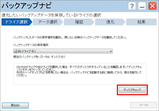 - 「ディスクチェック」ボタンをクリックします。