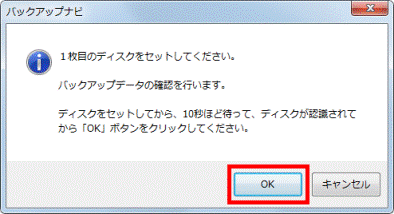 1枚目のディスクをセットして10秒ほど待ってから、「OK」ボタンをクリックします。