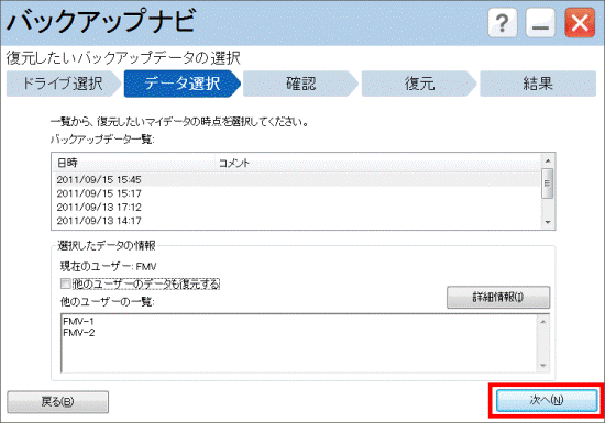 バックアップナビについての説明をよく読み、「次へ」ボタンをクリックします。